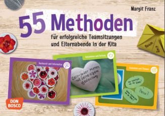 Margit Franz hat in ihrer Tätigkeit als KiTa-Leitung, Fachberatung und Fortbildnerin einen praxiserprobten Methodenschatz komponiert, der mit wenig Aufwand in Teamsitzungen, Elternabenden und Seminaren anzuwenden ist. Eine jede Methode ist kurz beschrieben und mit einem Foto aus der praktischen Arbeit der Autorin illustriert. Die kartonierten Methodenkarten haben ein handliches A5-Format und gliedern sich in acht verschiedene Themen: